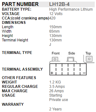 - Extreme high cranking-30% better starting power than equivalent lead acid