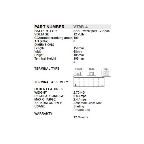 SSB POWERSPORT MOTORCYCLE BATTERY - AGM