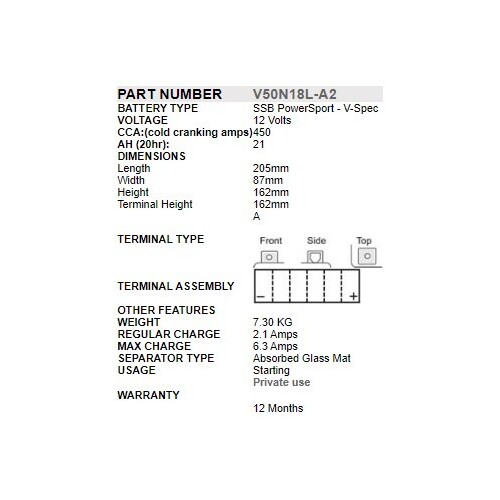 Each range varies in performance level and battery type, including not only Conventional types (acid filled) but also Lithium, Maintenance-Free, VRLA, Gel & DryCell types which means that for every application the customer has choice of up to 7 different batteries. Each range is also uniquely colour coded making SSB PowerSport the easiest motorcycle battery to resell in Australia.