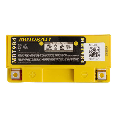 Specifically designed for motorcycles Motobatt batteries offer much higher cranking power and higher amp hour ratings. Their batteries can withstand constant starting without draining the battery or causing long-term cell damage. Their unique terminal design offers far greater versatility allowing them to fit a wider range of applications which enables stockists to carry a narrower range of batteries for a large market which makes it easier for retail customers to find a battery to fit their vehicle in stock.