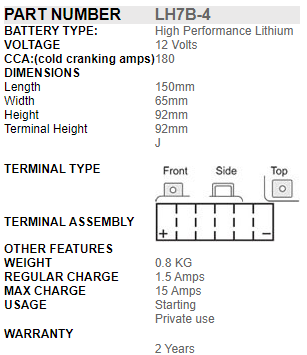 A normal lead acid motorcycle battery is designed to last for 200 300 cycles, whereas SSB PowerSport Lithium Batteries are designed to last for over 2,000 cycles (more than 10 Years design life). In addition, they can sit unused for over a year without losing charge and can also be charged extremely quickly without damaging the battery.