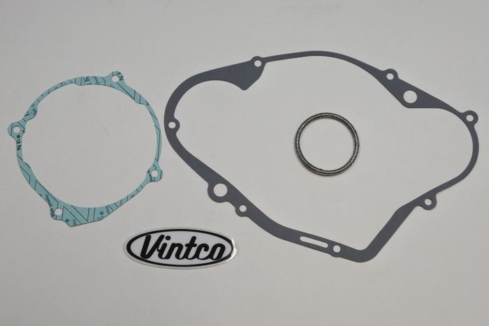 VintCo has all new engine gasket kits to help on your engine lower end rebuild. These gaskets are made with modern materials and manufacturing techniques to ensure an as good or better than OEM fitment and performance. The OEM part numbers are provided as a reference to ensure exact fitment. This 1978 Yamaha YZ250 gasket kit includes the left cover gasket, right cover gasket and exhaust pipe gasket to complete your build with ease. These newly manufactured gaskets from VintCo will help you keep the ride going!
