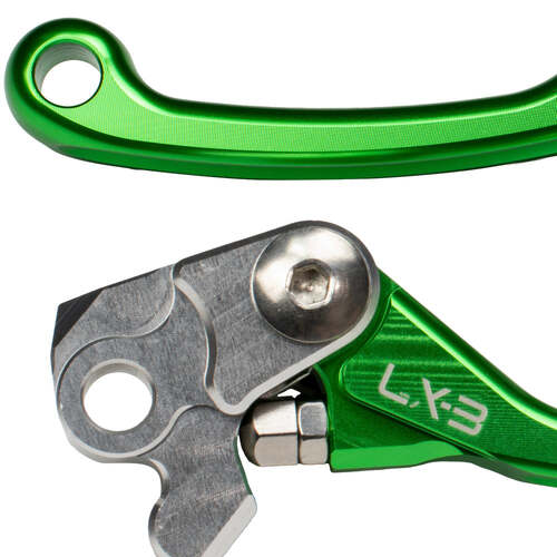Axiom LX-3 Pivot Levers are essential, whether youÂ’re a Pro or just a weekend warrior. Developed with input from pro racers, the Axiom pivot lever is specially designed for motocross, supercross and off-road racing. The Ergonomic slim line shape of the lever makes it comfortable to grip, combined with easy pull reduces rider fatigue, allowing you to go harder for Longer! Crafted and CNC machined from 6061 Billet aluminum with flex folding design, you can run like the ProÂ’s and look like the ProÂ’s.