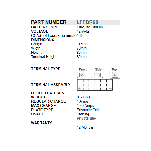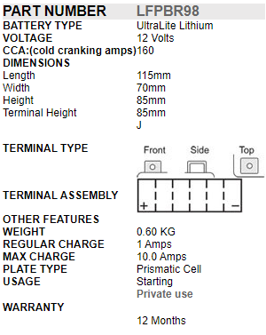 Unlike many other lithium batteries, SSB PowerSport Lithium Batteries are made using prismatic cells making them not only safe to use, but also boasts higher CCA (cold cranking amps), better cyclic properties and have a longer life. We are aware of only one other brand of lithium starting battery that uses prismatic cells. Other brands generally use cylindrical cells and while they may be a little cheaper due to lower manufacturing costs, they are inferior and are not designed for starting vehicles.​