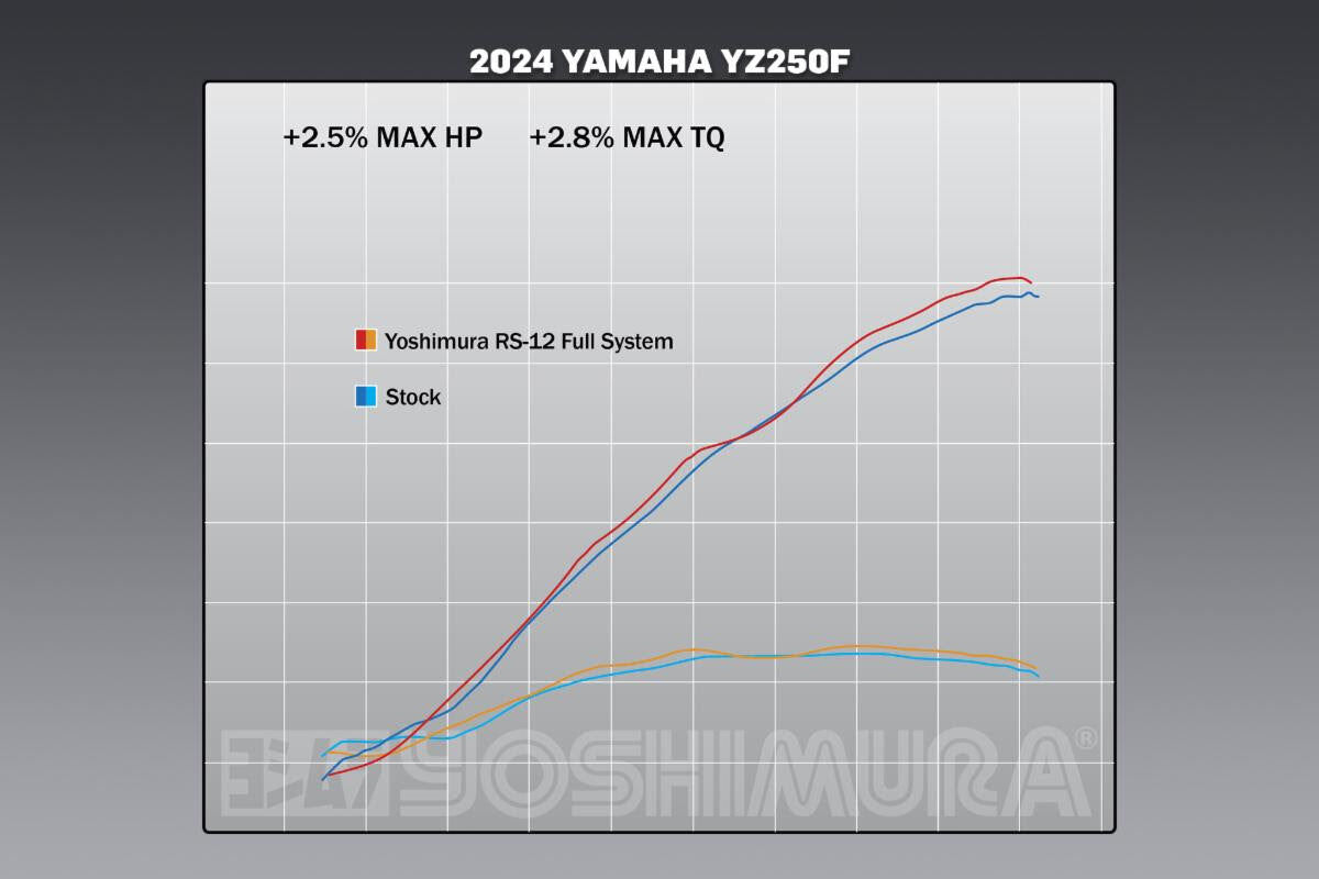 The adjustments to our spec proved what the 2024 YZ was telling our team was right. Our revised RS-12 Signature Series full system added 2.5% max HP and 2.8% max torque over stock. This is why we develop and test all of our product!