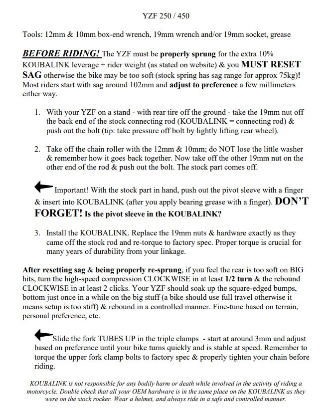 KoubaLink specialises in motorcycle lowering and performance linkages for off-road and dual-sport rear suspension systems. Compromise is not an option at KoubaLink. Listening to riders from all over the world explain where and how they use their off-road and dual-sport bikes. With their input, Koubalink manufacture products that add to your motorcycling experience and make it a little more enjoyable.