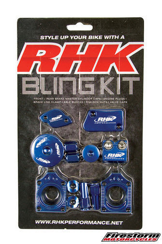 - Kit Includes: Front and Rear Master Cylinder Caps, Axle blocks, Engine plugs, Brake line clamp, Rim lock Nuts and Valve Caps