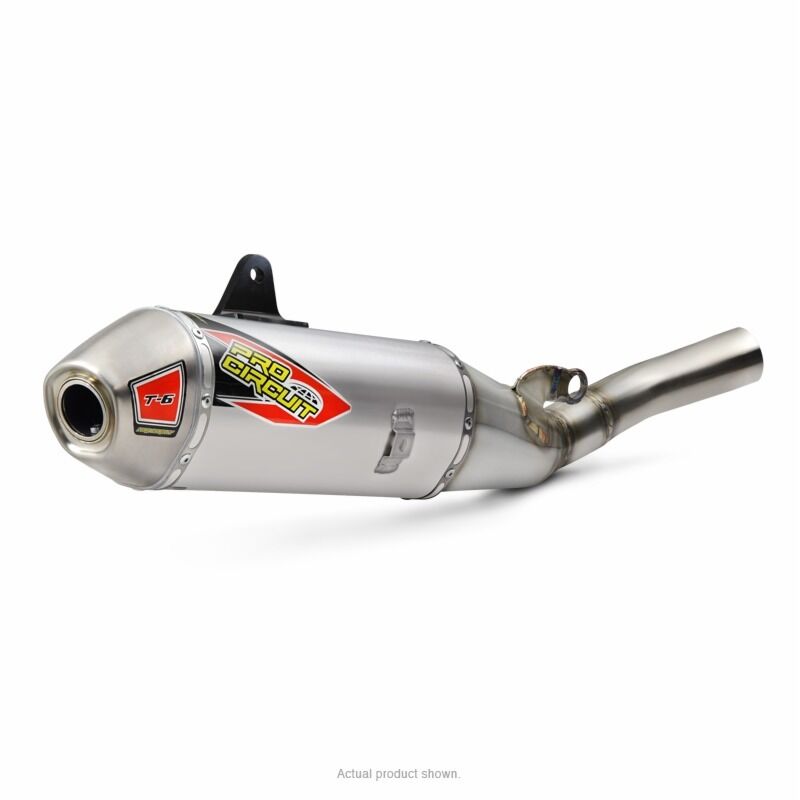 The T-6 Stainless Steel Slip-On is for riders looking for an inexpensive, easy-to-install, durable performance silencers that can bolt right onto their stock head pipe. The T-6 Slip-On is constructed of stainless steel and high quality aluminum for increased durability. The T-6 Slip-On is a great option for any rider looking for an increase in performance on a small budget. Removable USFS approved spark arrestors are included to make it easier to alternate between off-road and closed-course racing.