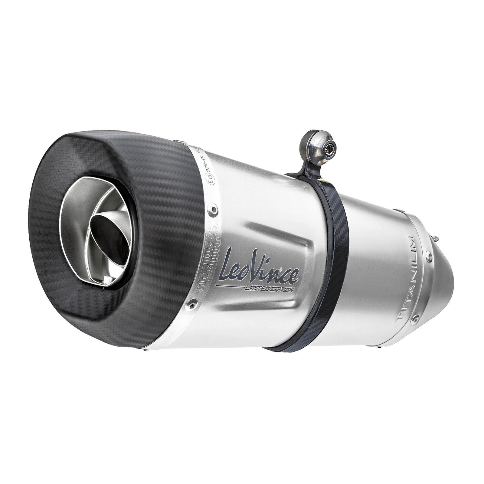 The lightness of titanium and carbon fiber: LeoVince has combined these two elements together and has created a series of "Limited Edition" exhausts. The exhaust outer sleeve of the "Titanium Limited Edition" is entirely made of Titanium Grade 1; the end cap is in carbon fiber, embellished with a matte clear coating for an even more refined look and to ensure maximum UV resistance. The strap is also in "full carbon".