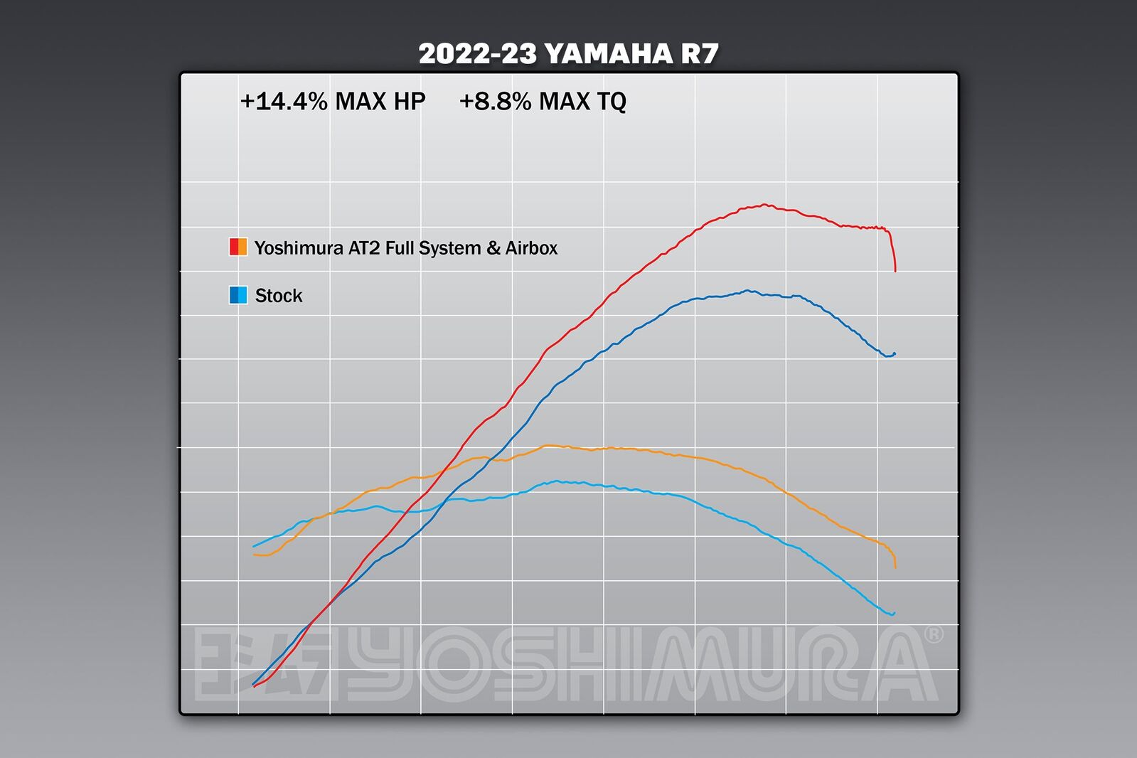 While testing and developing the Yamaha R7 airbox we found that the stock configuration doesn't allow near enough air to feed even the stock configuration for racing. Enter the new Yoshimura Airbox Kit. This kit single handedly increases performance on a stock engine giving it huge gains! In fact by just adding our airbox, you can expect 8.5% increase in max HP and 4.8% increase in max torque! Add our AT2 Race Series system and the performance really starts to climb.