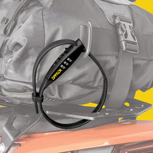 The ZIPPYLOK is ultra-lightweight and strong enough to secure both your helmet and jacket or luggage to your bike.